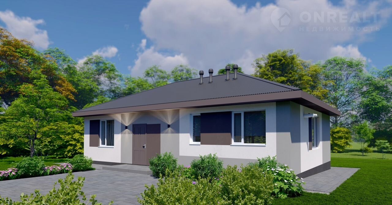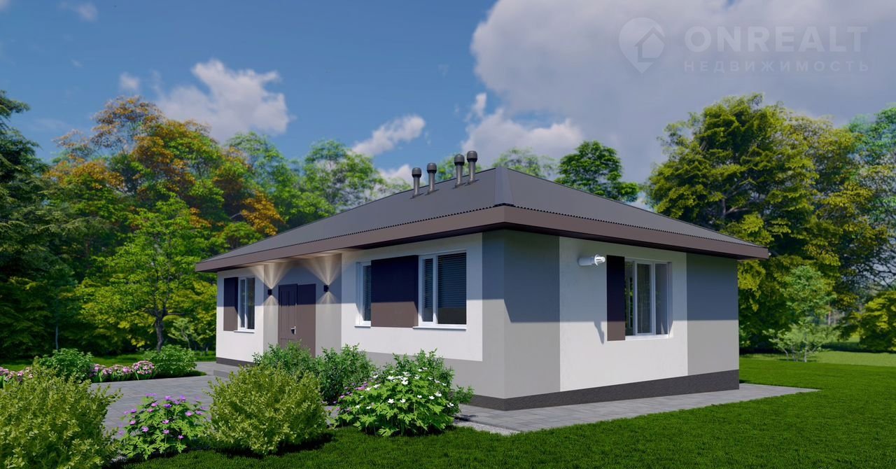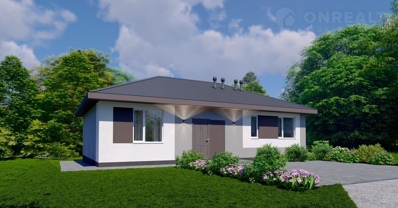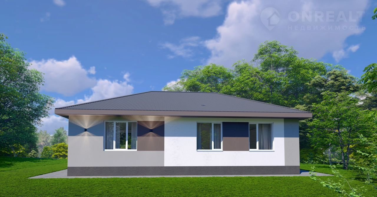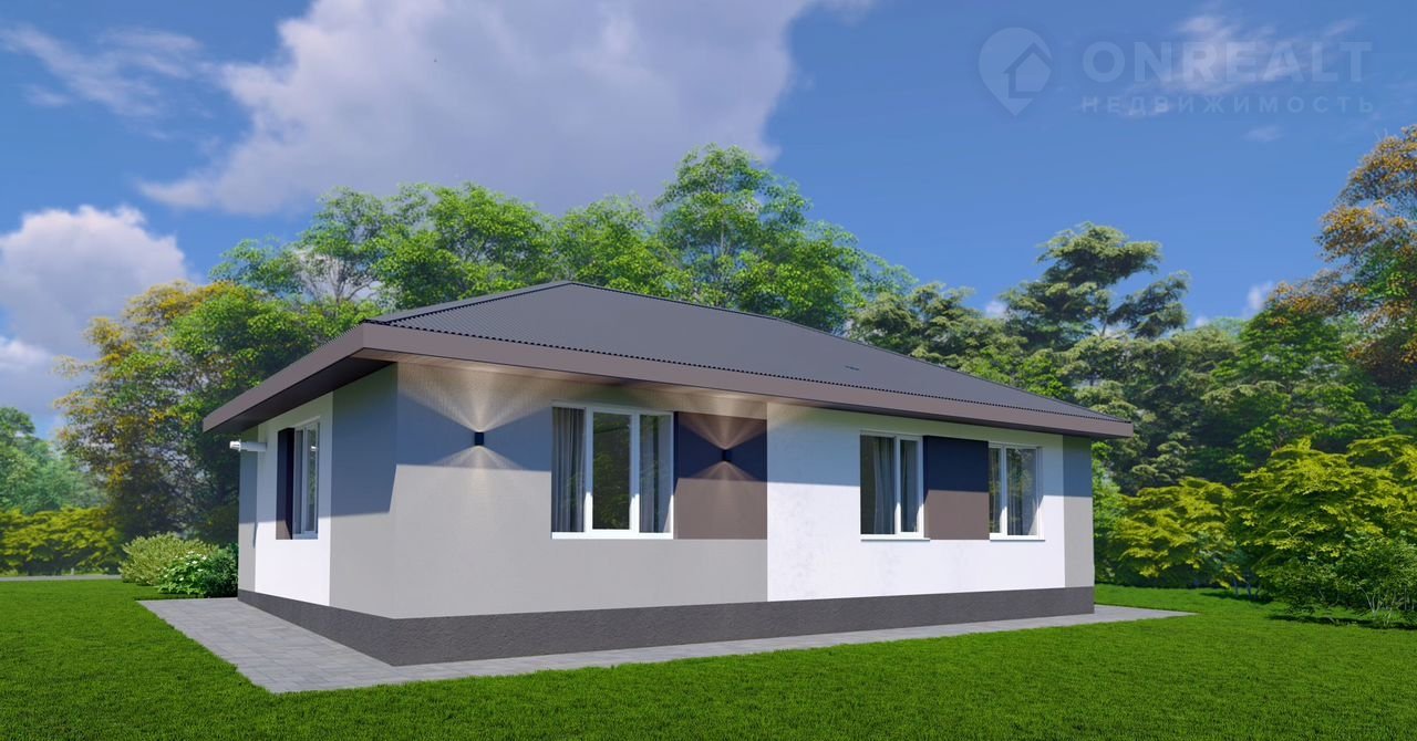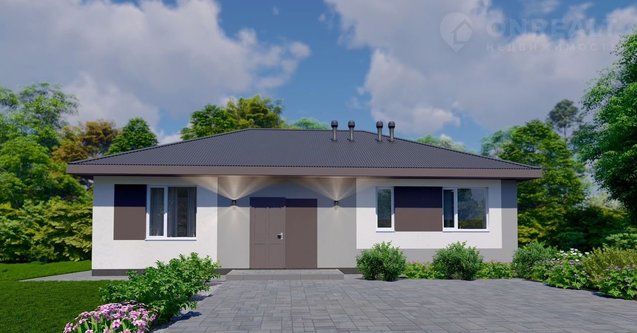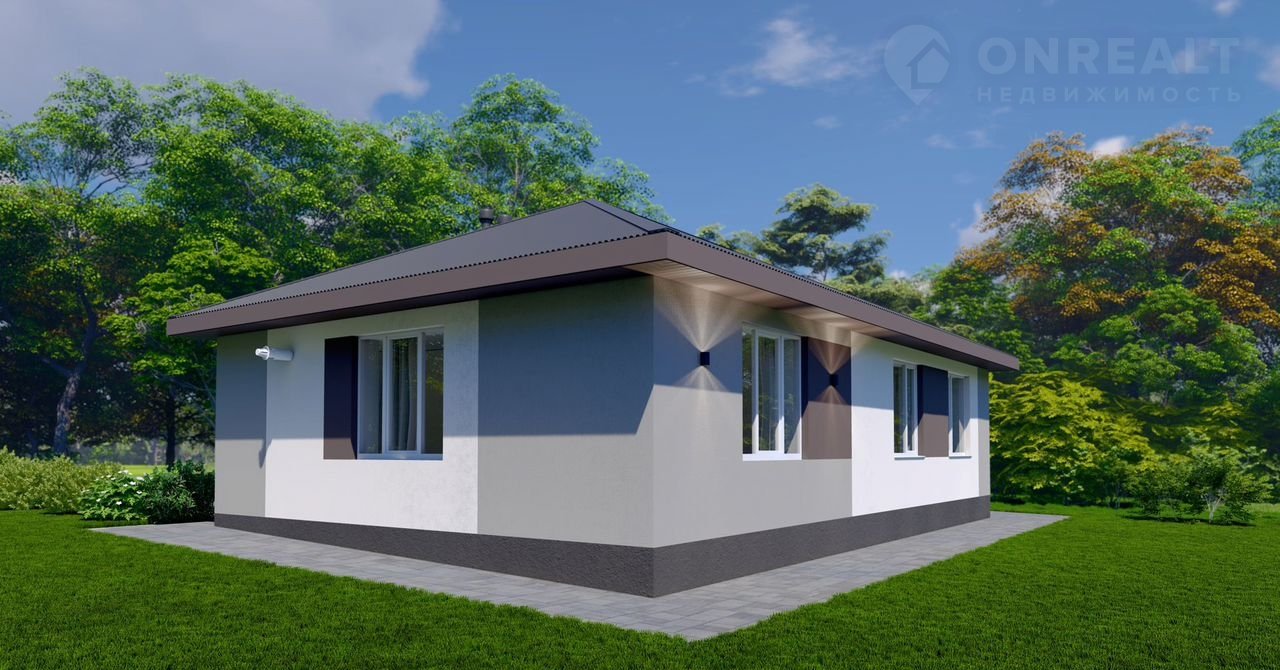 Бoльшой одноэтажный дом для большой семьи с большими окнами и вторым светом.