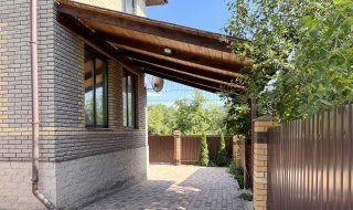 На улице площадка перед домом на 5 машин и вокруг дома выложена тротуарной плиткой, сделан навес для машины, отапливаемый гараж с роллетными воротами, откатные ворота на участок от пульта. Смонтировано уличное освещение участка и площадки.