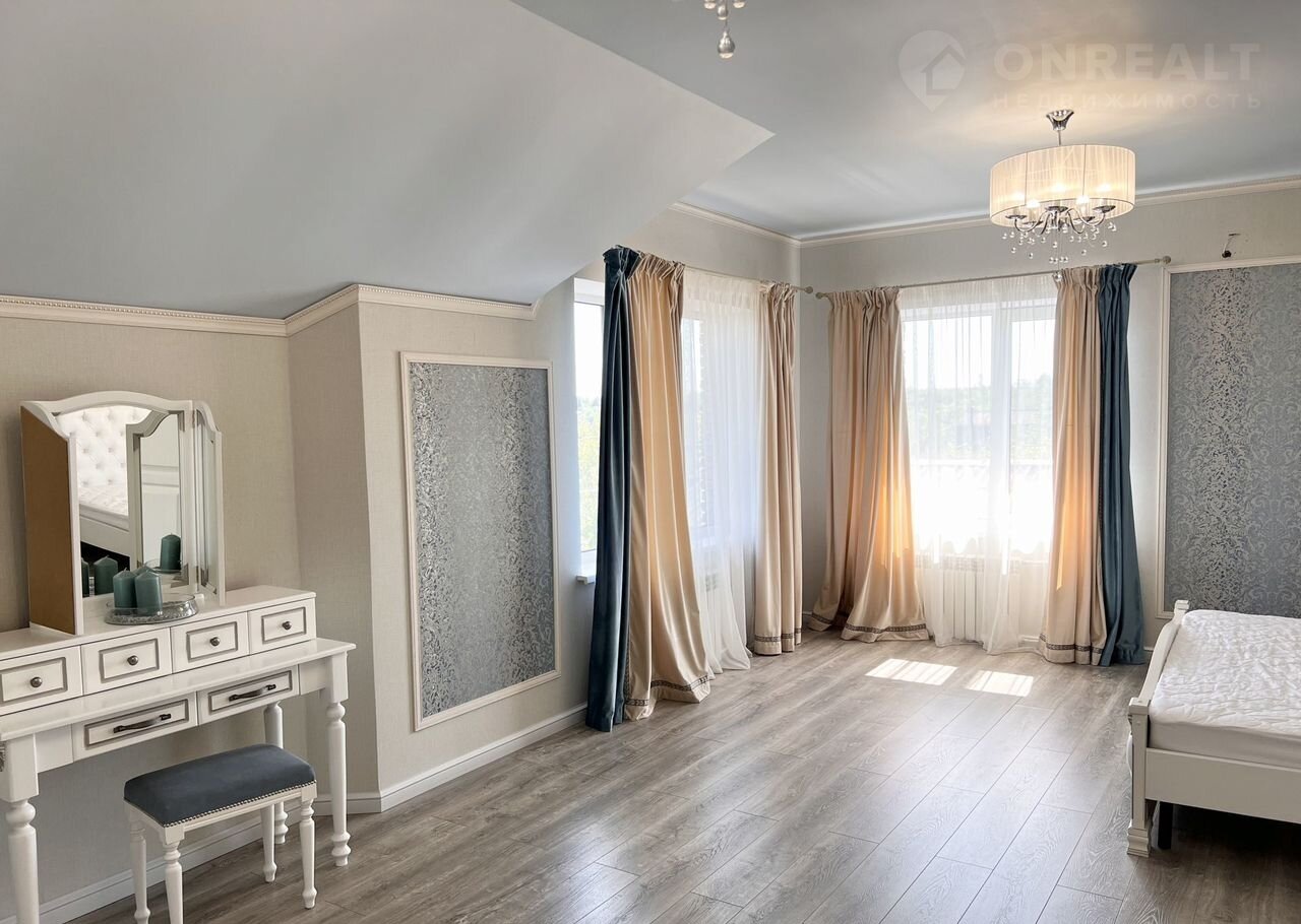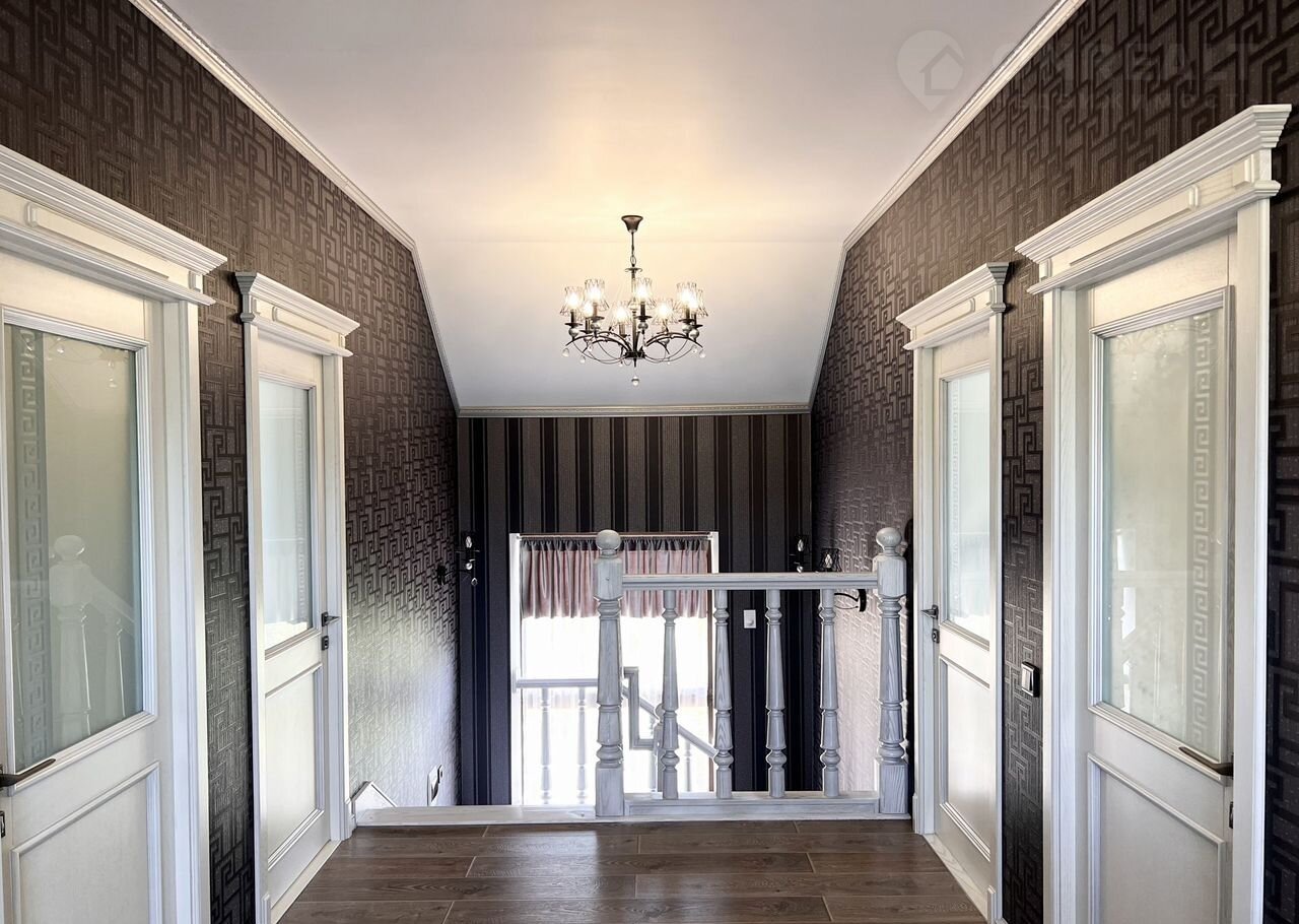 В доме дорогая встроенная кухня, лестницы, мебель в зоне столовой, двери сделаны на заказ из массива беленого дуба. Техника, люстры, шторы тоже остаются новым владельцам.