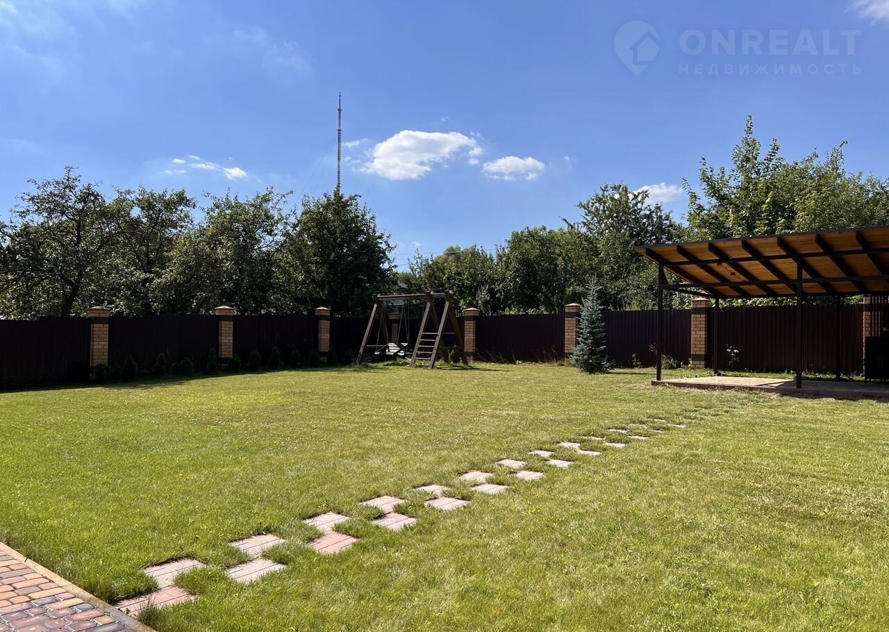 Участок 8 соток, ровный, правильной формы. Сделан ландшафтный дизайн: газонная трава, плодовые и декоративные насаждения, подвесные качели, беседка с оборудованной зоной барбекю, подведенными коммуникациями (свет, вода, с/у).