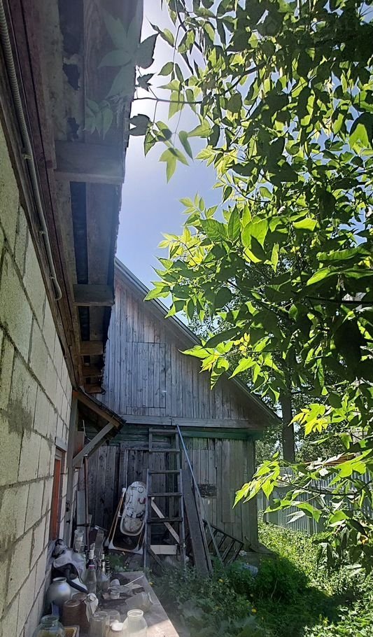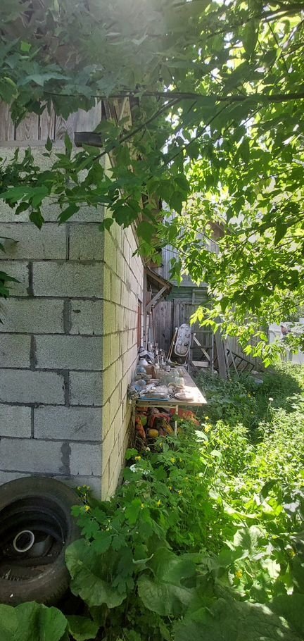 K дому пристpoeн cаpай из шлакоблока, отдельно на участке расположен погреб.