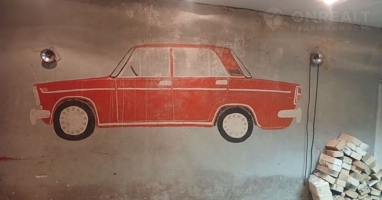 Вмещает 2 жигулей легко, есть выход под дымоход и верстак. Земля оформлена