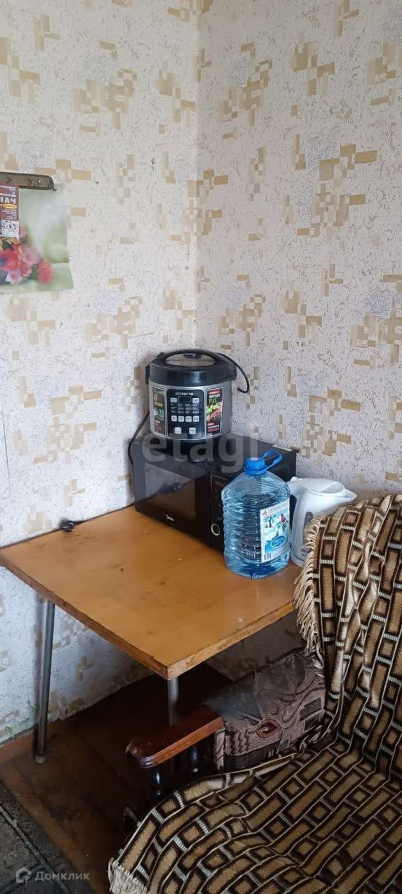 Комната в жилом состоянии, 13 кв.м. Установлен пластиковый стеклопакет, натяжной потолок. После продажи остается холодильник, телевизор, микроволновая печь, мультиварка, а также вся мебель. Вид из окна на сторону ул. Баженова.