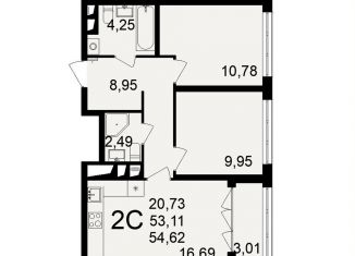 Двухкомнатная квартира на продажу, 54.6 м2