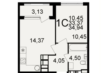 1-комнатная квартира на продажу, 34.9 м2