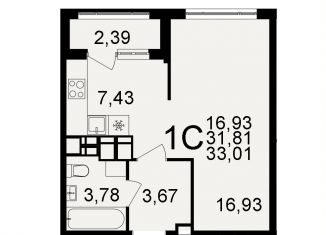 1-комнатная квартира на продажу, 32.9 м2