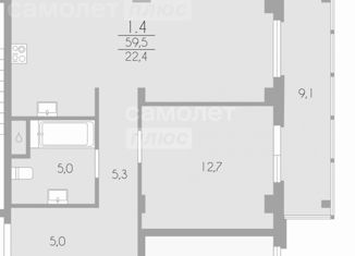 Общая площадь: 59.5 м2