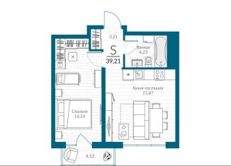 Однокомнатная квартира на продажу, 34.4 м2