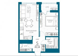 Продажа 1-комнатной квартиры, 41.1 м2