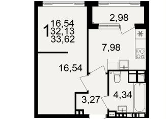 Продается 1-комнатная квартира, 33.2 м2