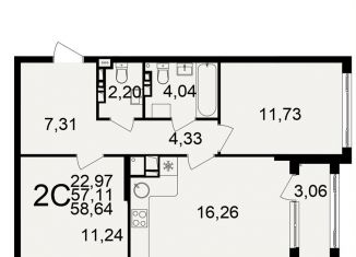 Продажа 2-комнатной квартиры, 58.6 м2