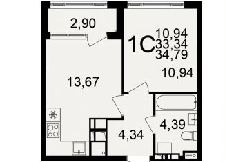 Продажа однокомнатной квартиры, 34.8 м2