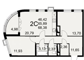 Продажа 2-ком. квартиры, 68.4 м2, улица Фёдора Смирнова, 2к1