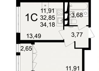 Однокомнатная квартира на продажу, 32.1 м2