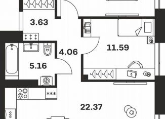 Двухкомнатная квартира на продажу, 59.2 м2