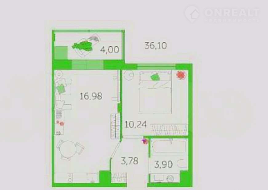 Общая площадь 36.1 м2