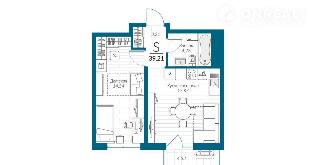 Общая площадь 39.2 м2