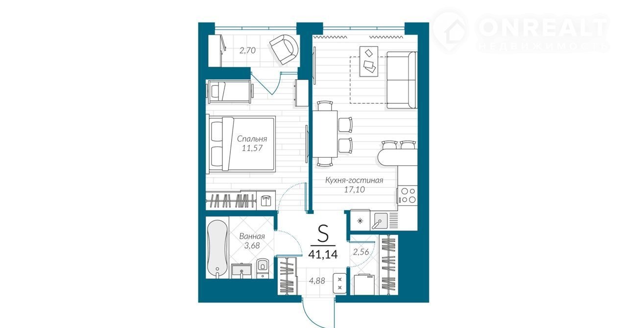 Общая площадь 41.1 м2