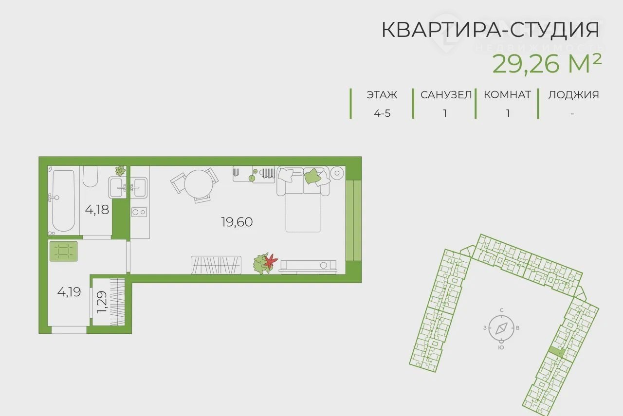 Общая площадь 29.3 м2