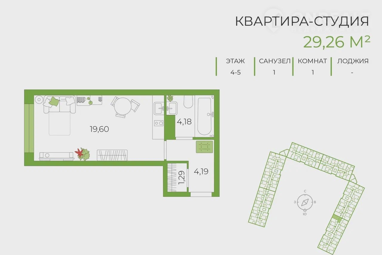 Общая площадь 29.3 м2