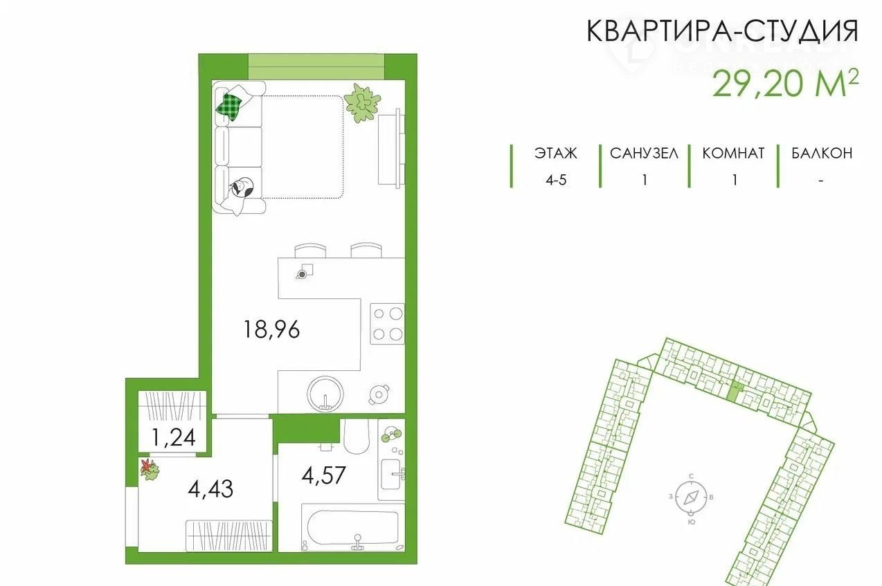 Общая площадь 29.2 м2