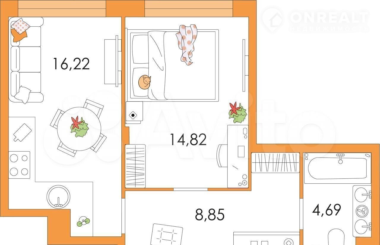 Общая площадь 43.8 м2