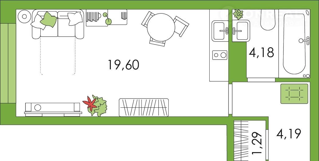 Общая площадь 29 м2