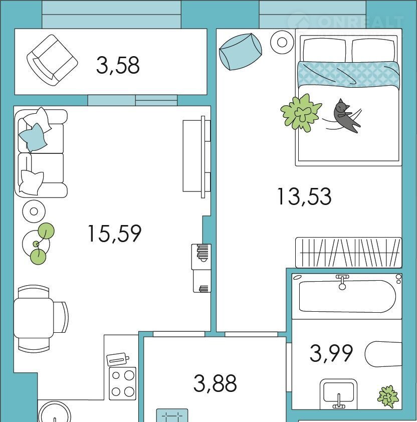 Общая площадь 38.8 м2