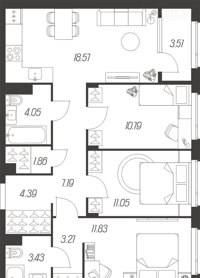 Количество комнат 4