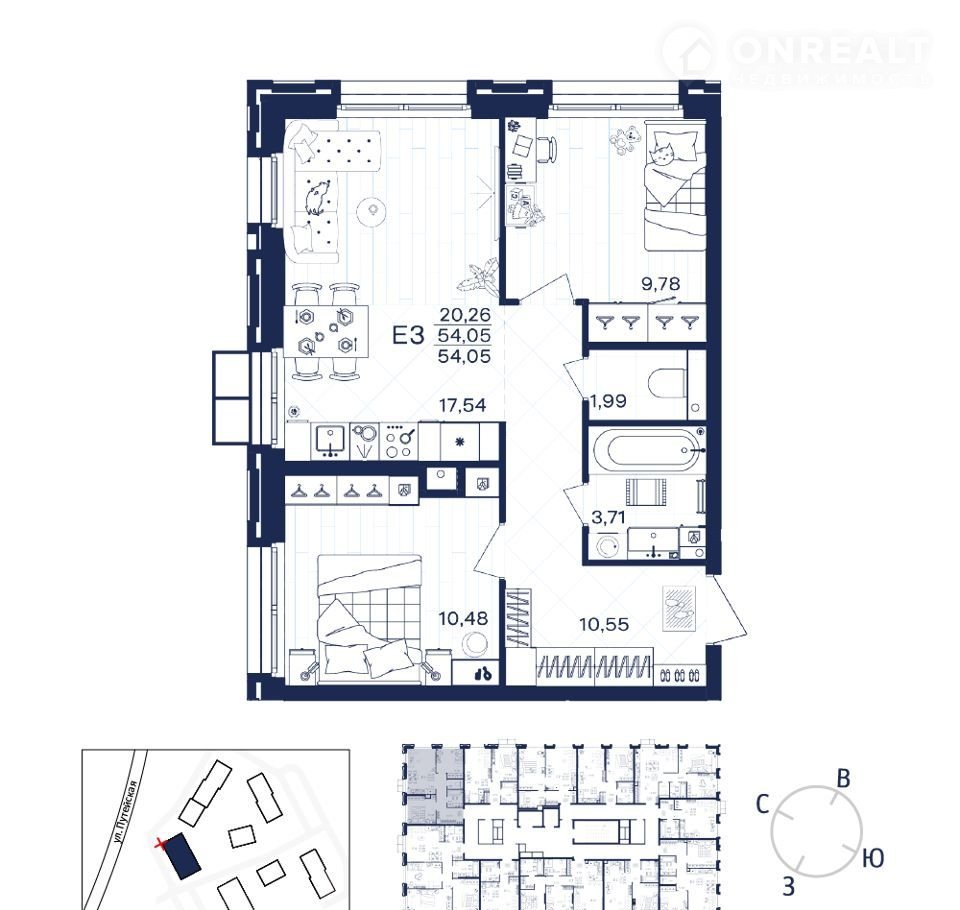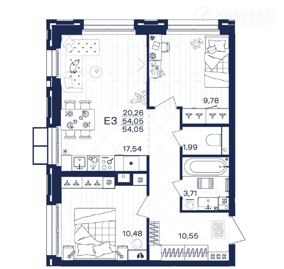 Общая площадь 54.1 м2