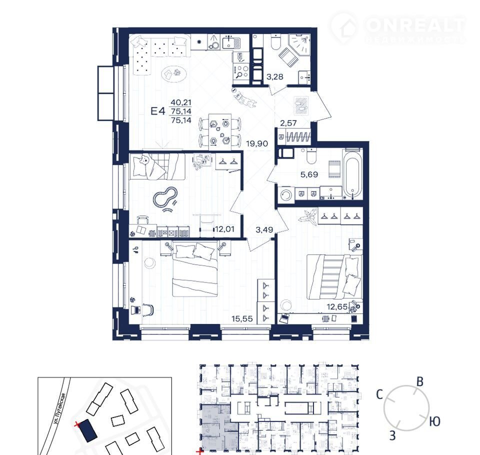 Общая площадь 75.1 м2