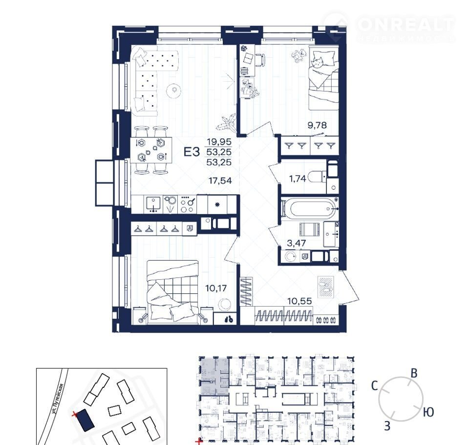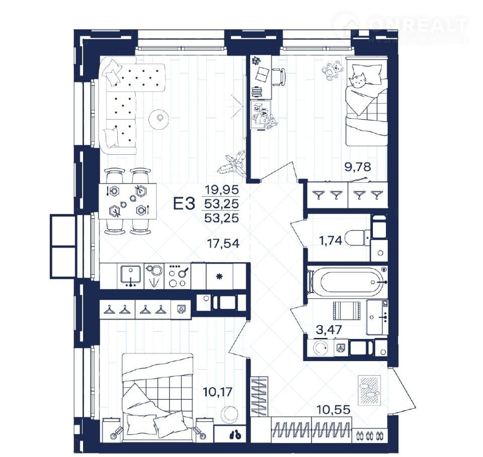 Общая площадь 53.3 м2