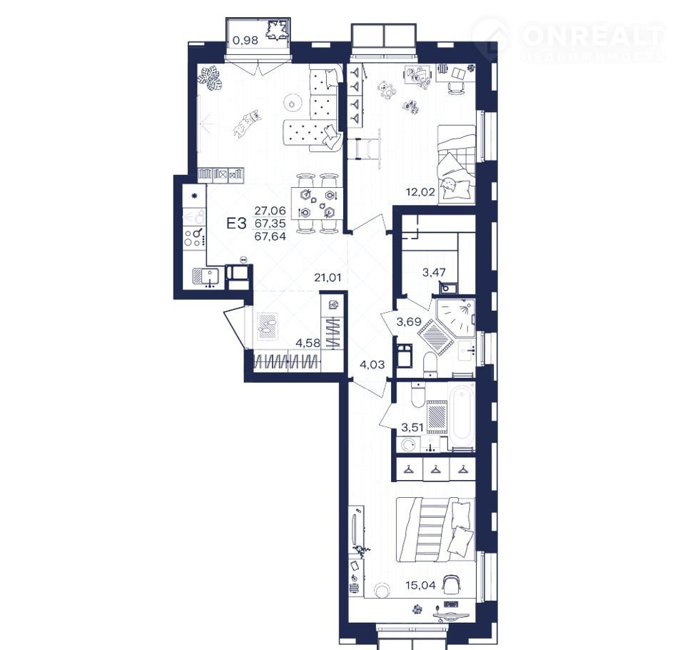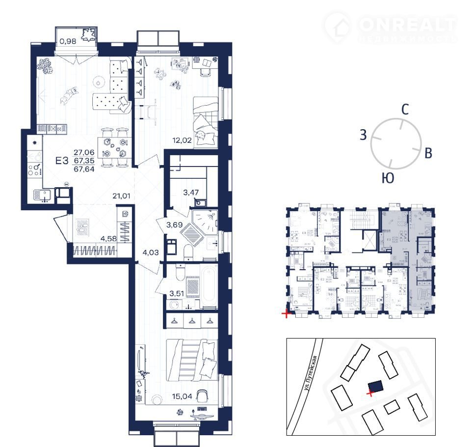 Общая площадь 67.6 м2