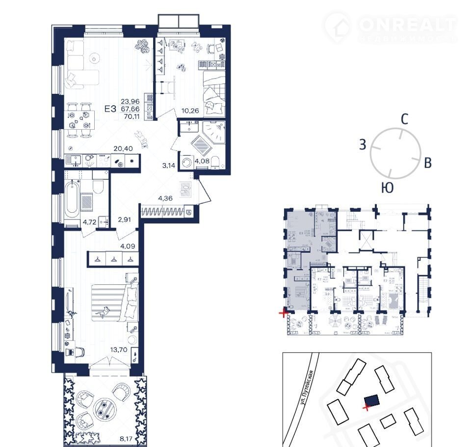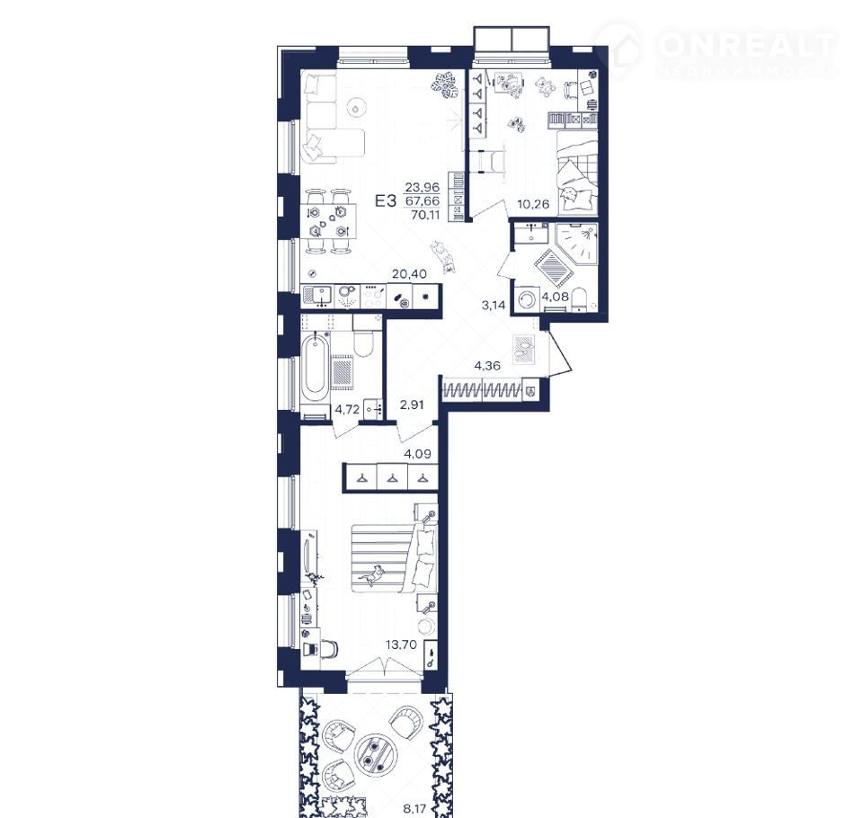 Общая площадь 70.1 м2