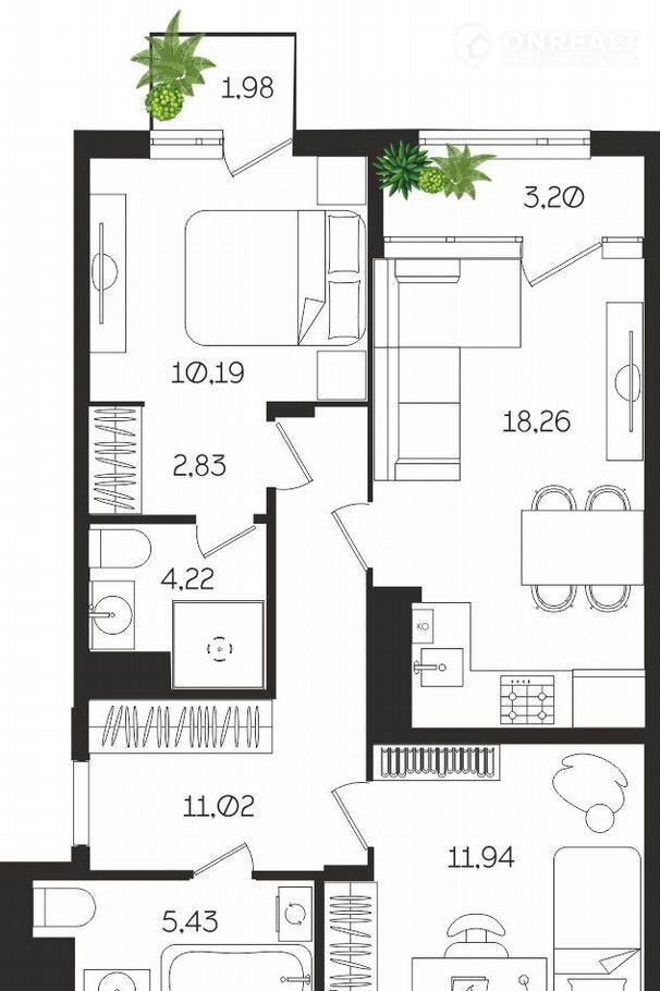 Общая площадь 68.5 м2