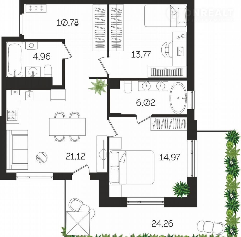 Общая площадь 78.9 м2