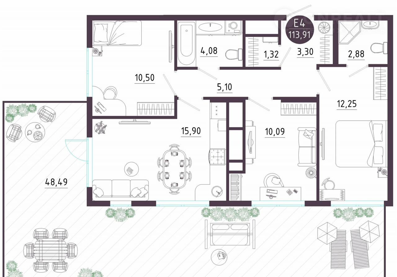 Общая площадь 113.9 м2