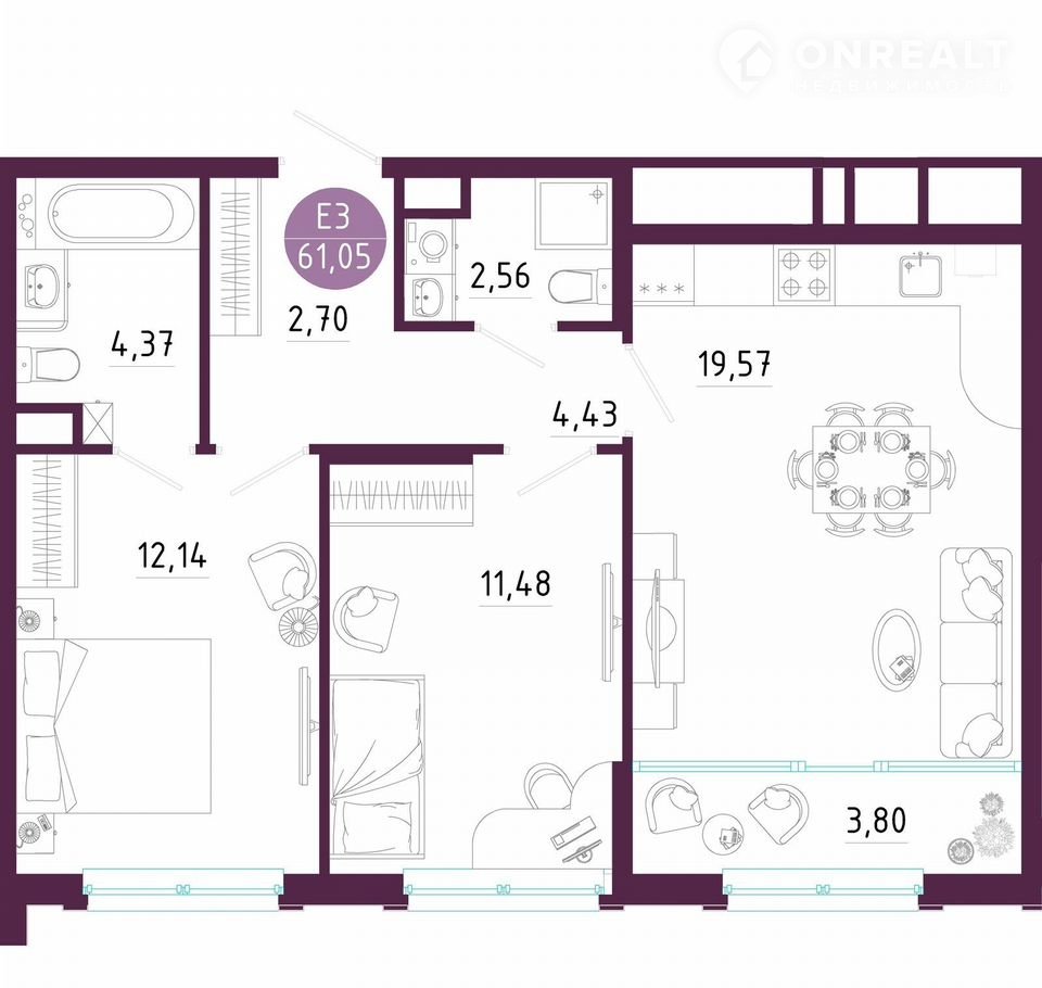 Общая площадь 61.1 м2