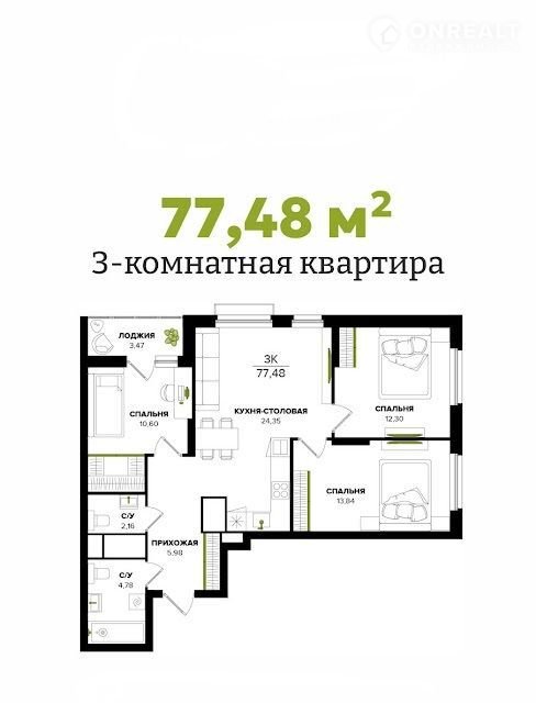 Общая площадь 77.5 м2
