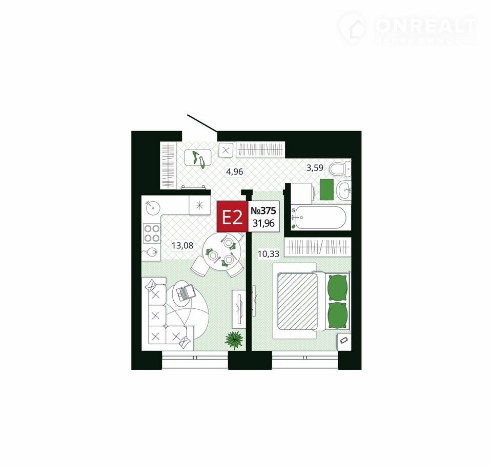 Общая площадь 32 м2
