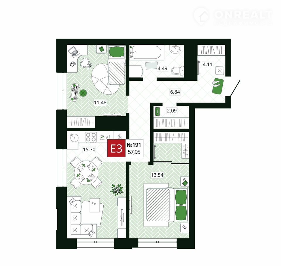 Общая площадь 58 м2