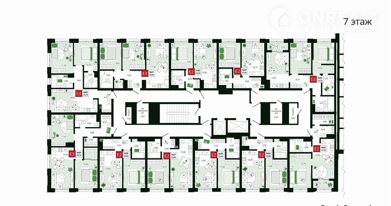 - Системы водоснабжения и отопления разведены горизонтально в конструкции пола