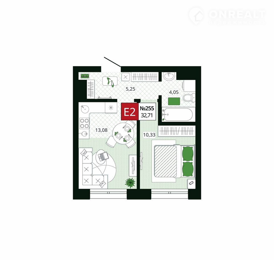 Общая площадь 32.7 м2