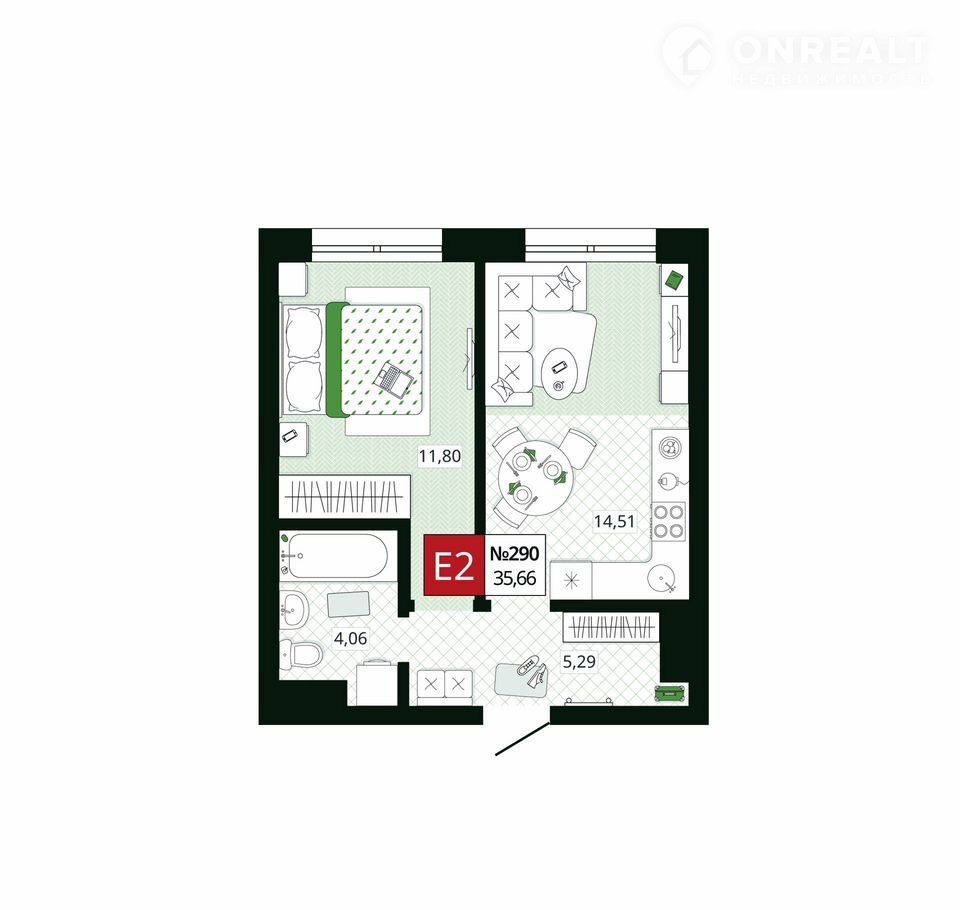 Общая площадь 35.7 м2