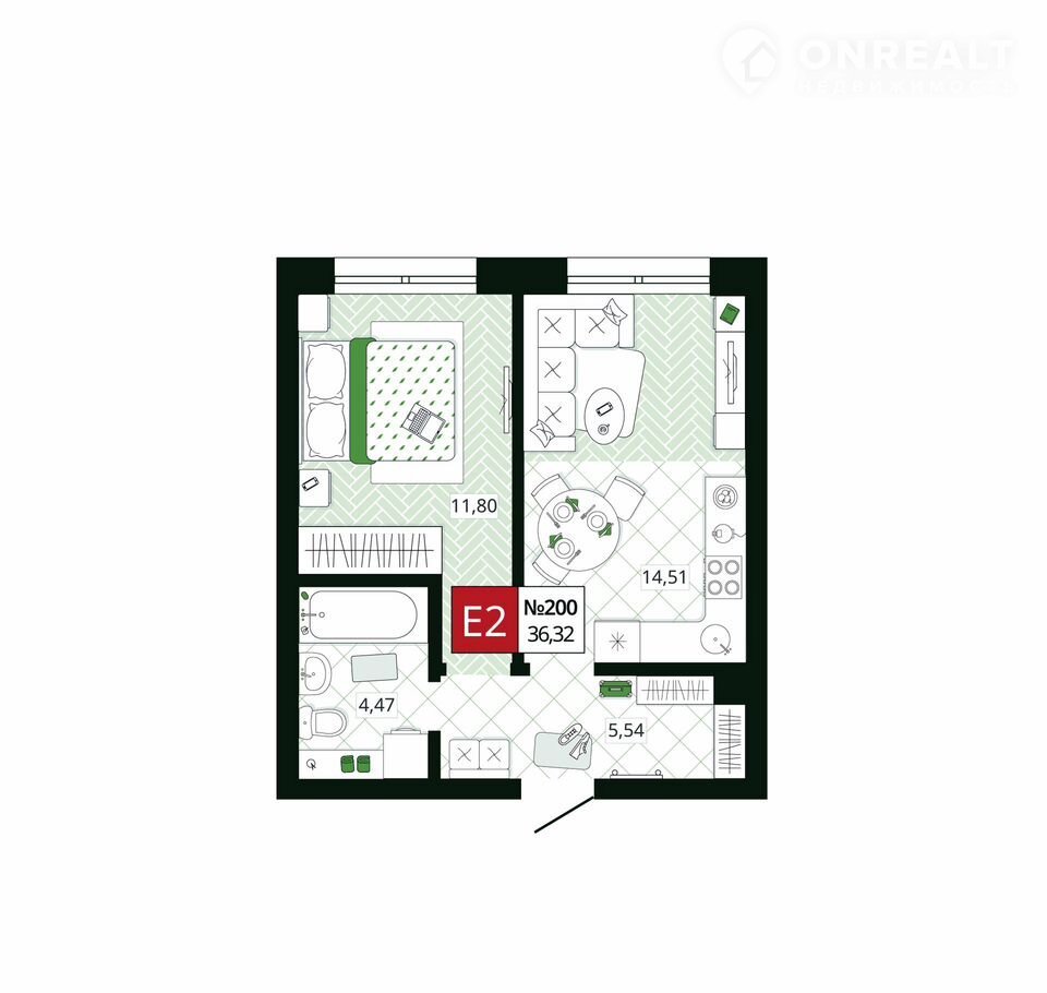 Общая площадь 36.3 м2