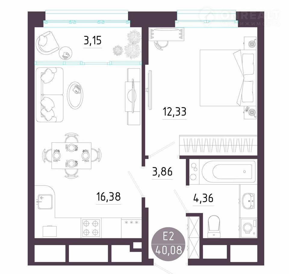 Общая площадь 40.1 м2