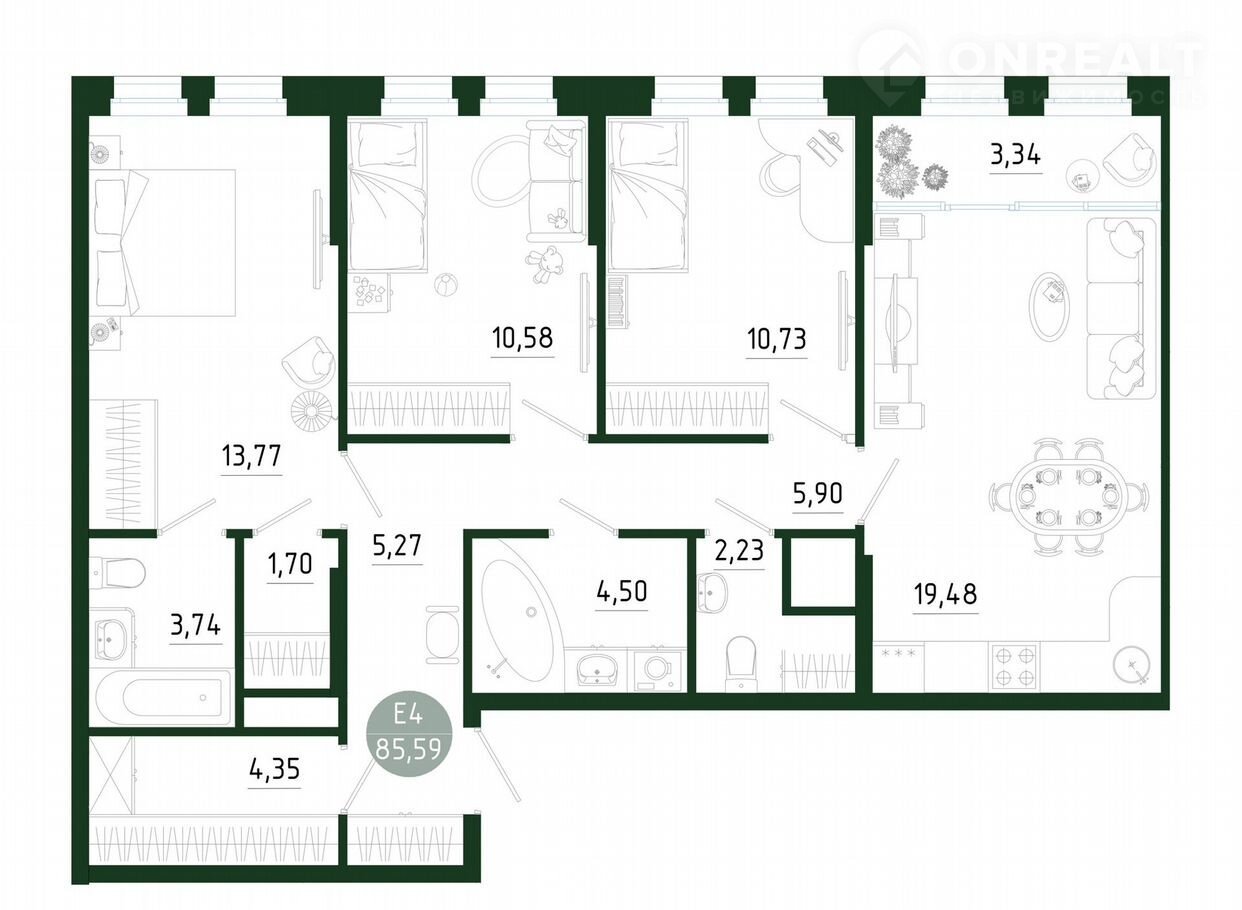 Общая площадь 85.6 м2