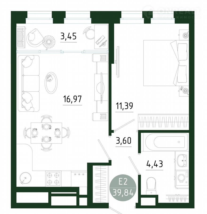 Общая площадь 39.8 м2