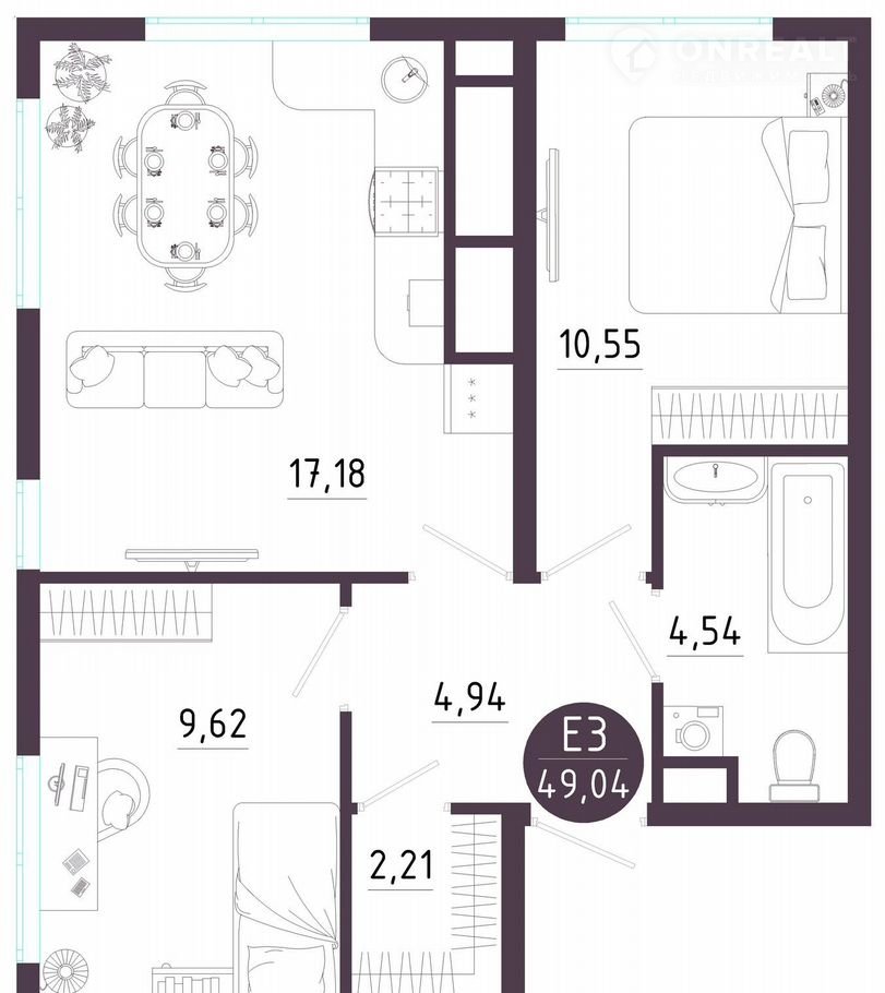 Общая площадь 49 м2