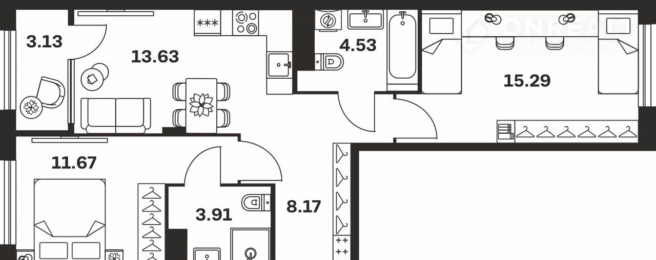 Количество комнат 3